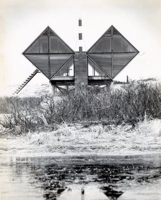 Porque aunque Geller siempre buscaba esquemas formales potentes, sintetizables casi en un logotipo (casa “Faro”, casa “A”, casa “Monopoly”, casa “Tetrabrik Tumbado”…) y en cierto modo  sus viviendas podrían calificarse de “caprichosas”, también es innegable que se ajustaban como un guante a las necesidades de sus clientes. Eran baratas, muy pequeñas pero espaciosas, con un carácter juguetón ideal para un refugio de vacaciones, y con un aire de precariedad/provisionalidad muy apropiado a su emplazamiento entre dunas. Por desgracia, dicha precariedad era algo más que una imagen, y las mareas vivas de los Hamptons y Fire Island se llevaron por delante algunas de sus más valiosas creaciones. Pero aún más destructivo que las mareas fue el mal gusto de los nuevos ricos que compraban sus casas para demolerlas y sustituirlas por desmesurados bodrios neo-coloniales (las McMansion las llamaba él).