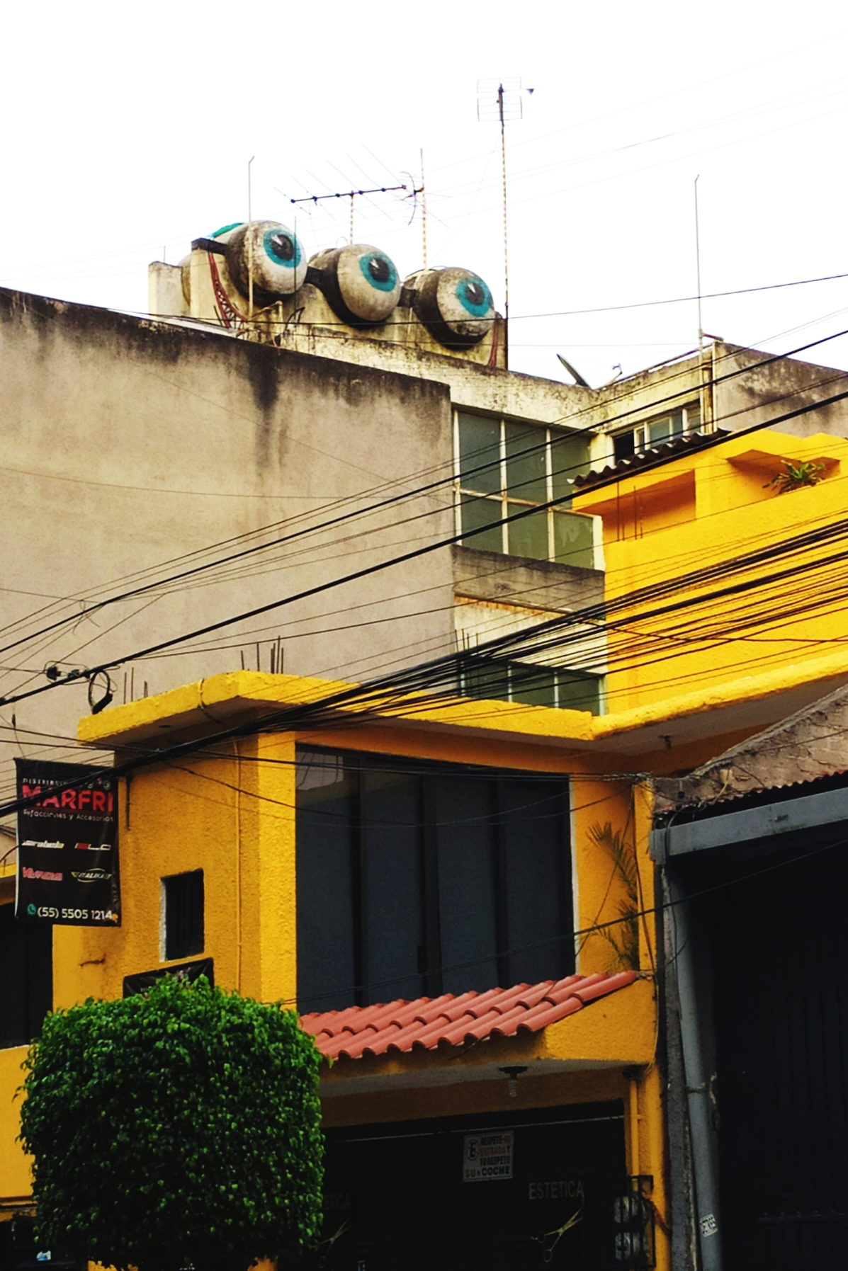 Si en su día hubiera encontrado estos fantásticos «tinacos» decorados, sin duda los habría usado para ilustrar la entrada sobre «los ojos que vigilan» de Jane Jacobs.