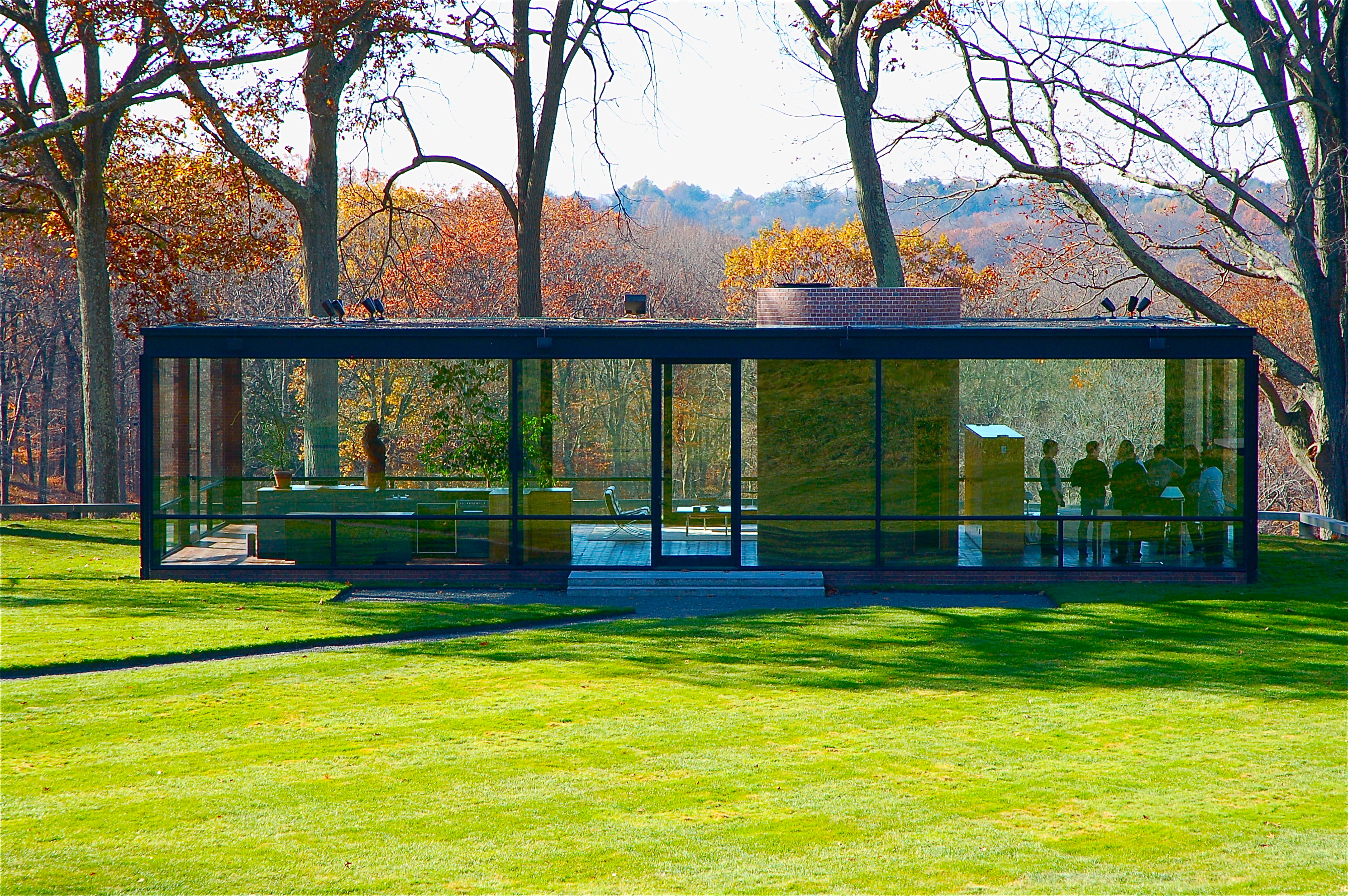 “Le contaré ahora una anécdota de cuando visité una casa de cristal, en Connecticut. Fuimos tres parejas y pasamos unas horas, después de haber comido allí, viendo al exterior bosques y prados maravillosos. Esta casa está formada de cuatro paredes de cristal con cortinas de tipo japonés, que entonces estaban levantadas y teníamos ante nosotros un paisaje completamente abierto. En el centro de la casa hay un cuarto circular –de mampostería o de concreto bien revestido- que encierra la sala de baños y un vestidor. Entonces, separadamente, pregunté a las señoras, después de pasar ahí dos horas, dónde les gustaría sentarse a leer o descansar o, inclusive, si habría un lugar donde se les antojaría platicar o huir del resto de las personas que vivieran dentro de esas cuatro paredes de cristal. Fue unánime la contestación: en el vestidor o en la sala de baños. Porque consideraron que era difícil estar viviendo completamente en el paisaje, aún cuando la intimidad allí existe porque no hay casas vecinas que molesten.”