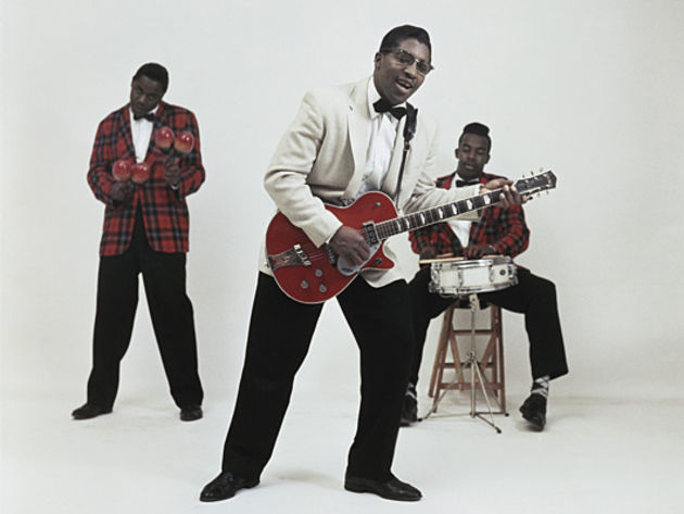 Bo Diddley, pese a ser uno de los gigantes de la música negra del siglo XX, fenomenal guitarrista y cantante, compositor de un cancionero a la altura del de Leiber y Stoller o el de Chuck Berry y principal responsable –junto a James Brown- de la recuperación del énfasis rítmico característico de la música negra en la música pop, suele ser recordado únicamente como el creador del ritmo “Bo Diddley”. Sus contribuciones son mucho mayores*, pero incluso esa única “invención” debería bastar para asegurarle la inmortalidad.